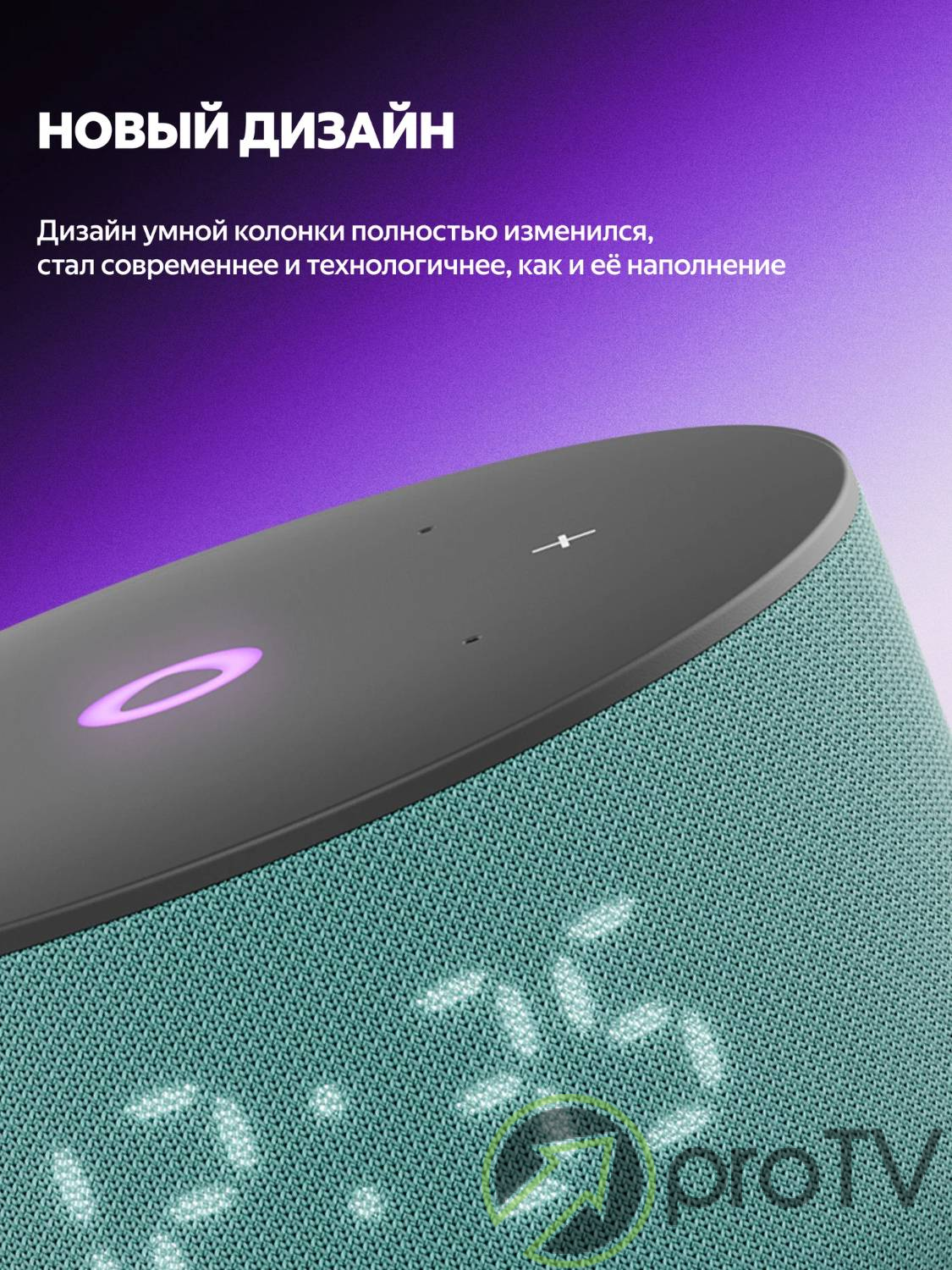 Благодаря более мягкой, цельной и гармоничной форме корпуса Станция Мини 3 отлично смотрится в любом современном интерьере. Цветовая палитра умной колонки тоже обновилась: можно выбрать классические чёрный и серый, а для ценителей акцентов подойдёт пастельный фиолетовый оттенок.