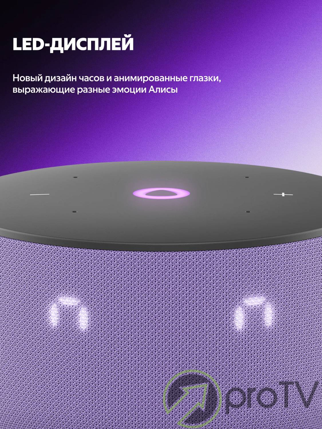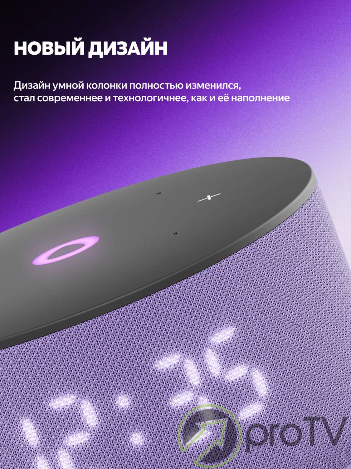 Благодаря более мягкой, цельной и гармоничной форме корпуса Станция Мини 3 отлично смотрится в любом современном интерьере. Цветовая палитра умной колонки тоже обновилась: можно выбрать классические чёрный и серый, а для ценителей акцентов подойдёт пастельный фиолетовый оттенок.