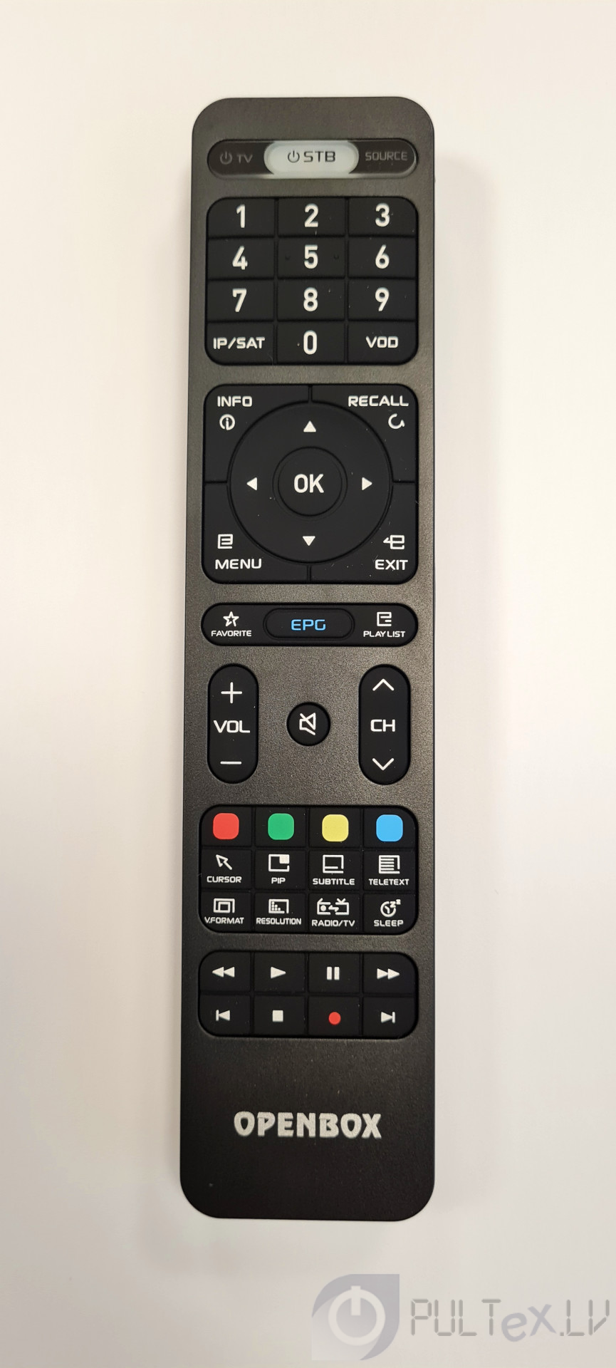 Пульт ДУ для популярных спутниковых ресиверов Openbox S4/S5/S6/S7/S8/S9/SX4/SX6, AS1/AS2/AS4K, A6 4K а также их близнецов под торговыми марками Octagon, HD Box, SkyWay, Optibox, Formuler. Пульт полноразмерный и ОБУЧАЕМЫЙ, то есть помимо ресивера, он способен, например, включать/выключать телевизор и переключать на TV источники сигнала. Этого вполне достаточно чтобы не было необходимости пользоваться вторым пультом (от телевизора). Подробно режим обучения под ваш телевизор описан на обратной стороне данного пульта ДУ.
